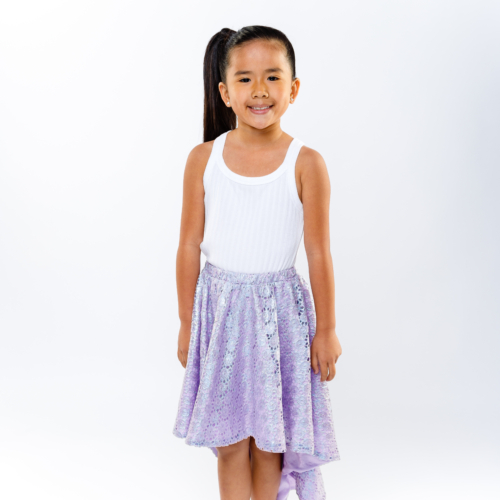 Love having some fun with your clothes? Our Ariel Highlo girl’s dress allows your daughter to channel your colorful side this season. The elastic waist and rainbow-colored Young Socialites Clothier logo pattern make it so that she can show off her individualism, even on dull days without any sun. Whether she’s dressing up for a formal occasion or just want something cute to wear while eating ice cream on the porch steps, Ariel’s dress is perfect with its skirt hem dipping into a “v” in the back.