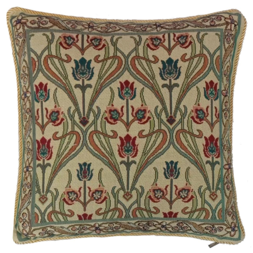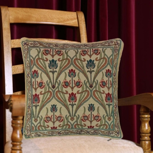 Art Nouveau Lotus Flower Beige Cushion Cover Throw Pillowcase