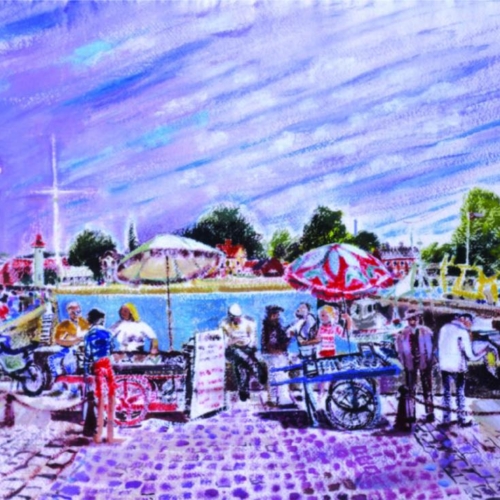 Bring a unique design to your customers’ shelves with our **Fish Stall, Honfleur**, sold in **wholesale packs of 6** at £6.30 trade price (£1.05 per card). Printed on premium FSC-certified cardstock, this 15x15cm card is ideal for landscape and coastal collections.