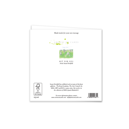 Bring a unique design to your customers’ shelves with our **Hit for Six!**, sold in **wholesale packs of 6** at £6.30 trade price (£1.05 per card). Printed on premium FSC-certified cardstock, this 15x15cm card is ideal for art and nature collections.