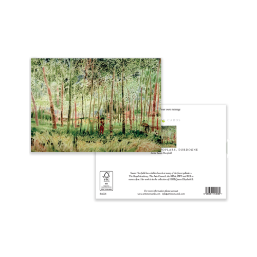 Bring a unique design to your customers’ shelves with our **Village Stream and Poplars, Dordogne**, sold in **wholesale packs of 6** at £6.30 trade price (£1.05 per card). Printed on premium FSC-certified cardstock, this 15x15cm card is ideal for landscape and coastal collections.