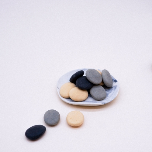 Assorted handmade soaps in a small natural pebble design. They look just like pebbles on the beach. Handmade with 100% natural ingredients and lemongrass essential oil, yet vegan and cruelty free. Thanks to a coconut oil base which helps lock in hydration. As a result the skin stays hydrated and supple after cleansing. Each soap is small but mighty. It can be used many times last longer than you can imagine. The set comes with a handmade white porcelain dish with a grey marble effect giving its unique character on its own. Ideal a great gift for any occasions and home use.
