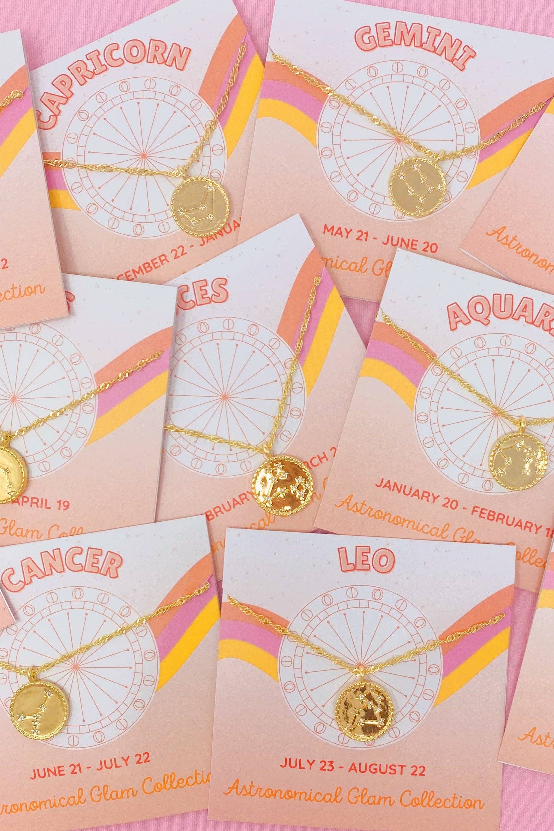 This prepack comes 2 of each zodiac necklace, total of 24 necklaces. Beautiful constellation pendant necklace comes with specially designed card for the collection. It makes great presentation to give this as a gift or for yourself. Medallion pendant with star shining Cubic Zirconia details and cabled edges. Twisted chain is absolutely perfect for this pendant! 16 inch chain with 2.5 inch extender. Brass gold plated Lead and Nickel FreeMade in China