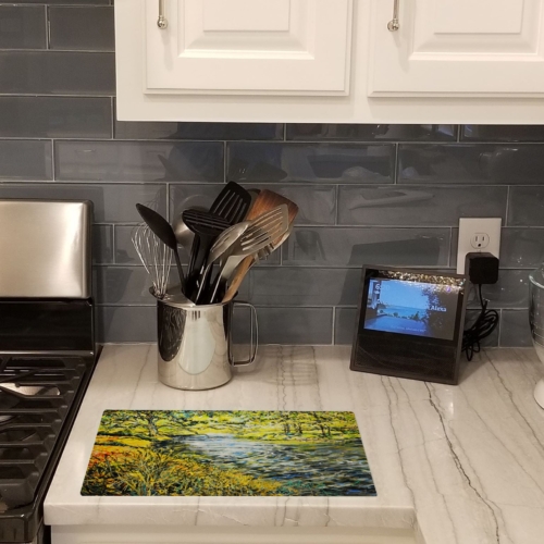 Introduce your kitchen to the vibrant, large Decorative Glass Cutting Board from Caroline’s Treasures. Crafted from resilient tempered glass, this board is not only a utilitarian necessity but also a colorful art piece. With its generous dimensions of 15 inches in height and 12 inches in length, it offers ample space for all your cutting needs. Every piece showcases captivating artwork from distinguished artists, bringing an aesthetic edge to your kitchen. Beyond its attractive design, this cutting board ensures your countertop stays pristine and unscathed, owing to its heat-resistant properties. Engineered with user convenience in mind, it features non-skid feet for stability, and rounded corners for additional safety. Its robust construction renders it virtually unbreakable, guaranteeing longevity. The board comes with protective feet bumpers, maintaining its position during use. This product is recommended to be hand washed only. Proudly printed and assembled in the United States, this cutting board exemplifies superior craftsmanship. With Caroline’s Treasures’ Decorative Glass Cutting Board, you’re investing in a blend of functionality and artistic flair.