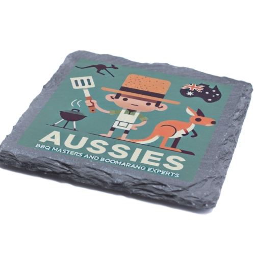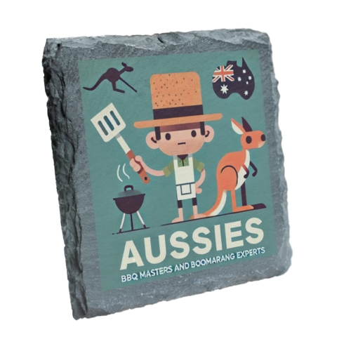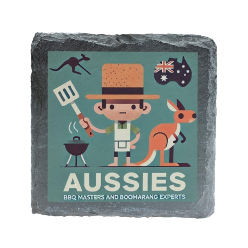 Bring the charm of the Australian Outback to your home with the “Aussies BBQ Masters and Boomerang Experts” Slate Coaster. This fun and functional coaster celebrates the Aussie spirit with a whimsical design featuring a kangaroo, boomerang, and BBQ imagery, making it the perfect conversation starter. Crafted from durable natural slate, this coaster offers a non-slip and heat-resistant base, ensuring your surfaces stay protected while you enjoy your favorite beverages. Whether you’re hosting a backyard barbecue or sipping coffee indoors, this coaster adds a touch of Aussie flair to your table. Looking for a unique gift? The “Aussies BBQ Masters and Boomerang Experts” Slate Coaster is ideal for BBQ enthusiasts, Australia lovers, or anyone who appreciates lighthearted and quirky design. Add it to your home or gift it to a friend for a touch of Down Under charm. Order yours today and fire up the fun! Premium Slate Material: Made from durable natural slate, ensuring protection for your surfaces while adding rustic charm. Whimsical Aussie Design: Features a playful illustration of an Australian BBQ theme with kangaroo and boomerang details, perfect for Aussie fans. Non-Slip and Heat-Resistant: Designed to securely hold beverages and protect your tables from heat and moisture. Perfect for BBQ Lovers: A great gift for barbecue enthusiasts, Australia lovers, or those who enjoy quirky décor. Functional & Decorative: A fun and practical addition to kitchens, outdoor BBQs, or man caves, blending style with function.