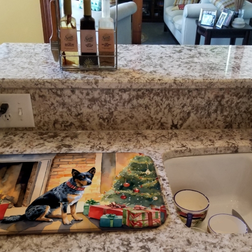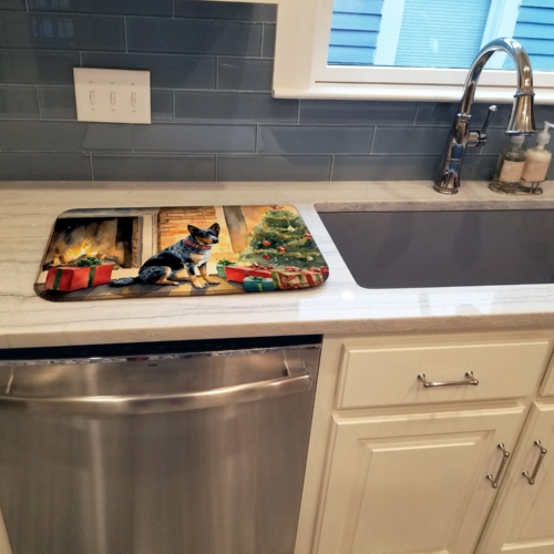 Dish Drying Mat featuring breed specific Australian Cattle Dog artwork. Celebrate Christmas with this Christmas Dish Drying Mat. Say goodbye to messy countertops and soggy dish towels with our innovative dish drying mat. Our high-quality dish drying pad is designed to keep your countertops dry while offering a stylish and efficient solution. Whether you’re air drying dishes, glasses, stemware, silverware, pots, pans, bottles, or even fruits and vegetables, our dish mat is the perfect choice. The 14 inches x 22 inches size fits most counters and dish drying racks, and the non-slip design ensures stability. Made with water-absorbent polyester and a polyurethane foam insert, our dish drying mat is not only functional but also durable. It’s machine washable and printed in the USA for long-lasting use. The beautiful artwork adds flair to your kitchen decor, making it a perfect housewarming gift or present for any occasion. Upgrade your kitchen experience with our absorbent and versatile dish drying mat.