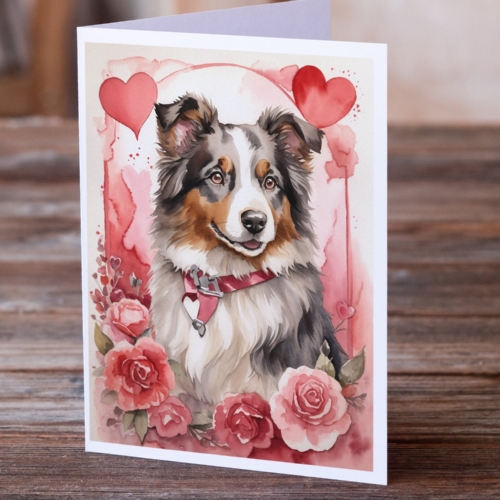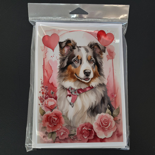Australian Shepherd Valentine Roses Greeting Cards Pack of 8