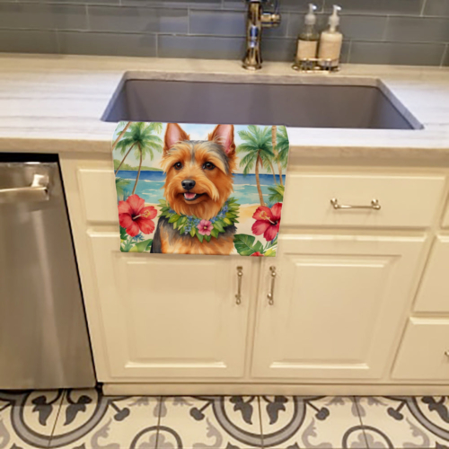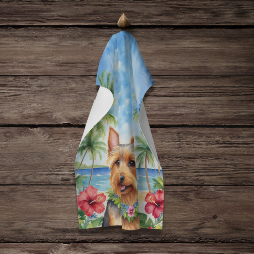 Kitchen Towel featuring breed specific Australian Terrier artwork. Experience the perfect blend of aesthetic appeal and functional excellence with our Plush Velour Kitchen Towels. These are not your ordinary decorative kitchen towels that gather dust. Instead, they are designed to be as practical as they are stylish. The front layer of our towel is constructed from a minky plush polyester, known for its durability and color retention. Unlike conventional kitchen towels, the artwork on our towels is dyed directly into the fabric, ensuring vibrant colors that last. Polish your glassware to a brilliant sparkle using the plush front side of the towel. Flip to the back, crafted from 100% cotton terry loop, to exploit its exceptional absorbency for drying dishes or wiping down counters. Our kitchen towels redefine the concept of functional art, offering lasting quality that maintains the towel’s shape over time. Measuring 15 inches by 25 inches and weighing 2.3 lbs per dozen, these towels deliver an overwhelming sensory experience with their soft, plush, and smooth texture. The edges are meticulously finished with binding, enhancing their durability and visual appeal. For your convenience, these towels are machine washable and can be dried on low heat. After the first wash, the top fabric becomes even softer and fluffier, eliminating the need for ironing. Treat your kitchen to the luxury and functionality it deserves with our plush velour kitchen towels.