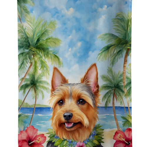 Kitchen Towel featuring breed specific Australian Terrier artwork. Experience the perfect blend of aesthetic appeal and functional excellence with our Plush Velour Kitchen Towels. These are not your ordinary decorative kitchen towels that gather dust. Instead, they are designed to be as practical as they are stylish. The front layer of our towel is constructed from a minky plush polyester, known for its durability and color retention. Unlike conventional kitchen towels, the artwork on our towels is dyed directly into the fabric, ensuring vibrant colors that last. Polish your glassware to a brilliant sparkle using the plush front side of the towel. Flip to the back, crafted from 100% cotton terry loop, to exploit its exceptional absorbency for drying dishes or wiping down counters. Our kitchen towels redefine the concept of functional art, offering lasting quality that maintains the towel’s shape over time. Measuring 15 inches by 25 inches and weighing 2.3 lbs per dozen, these towels deliver an overwhelming sensory experience with their soft, plush, and smooth texture. The edges are meticulously finished with binding, enhancing their durability and visual appeal. For your convenience, these towels are machine washable and can be dried on low heat. After the first wash, the top fabric becomes even softer and fluffier, eliminating the need for ironing. Treat your kitchen to the luxury and functionality it deserves with our plush velour kitchen towels.