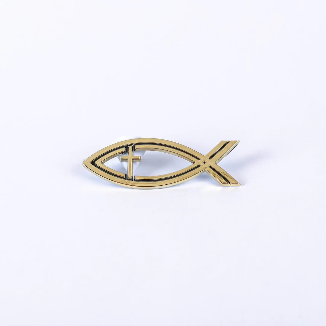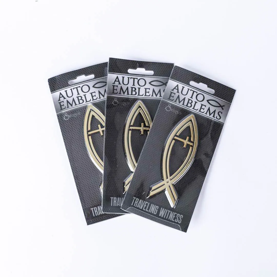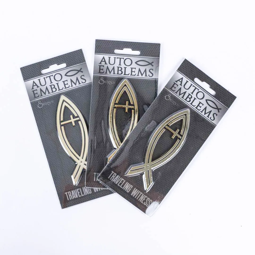 Show your faith with pride wherever you go with our Faith and Hope Auto Emblem. This stunning emblem combines the symbol of the fish and the cross, representing faith, hope, and Christís eternal love. The emblem features vibrant gold on a sleek black background, creating a striking contrast that is sure to catch the eye.