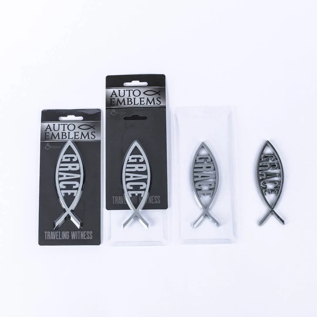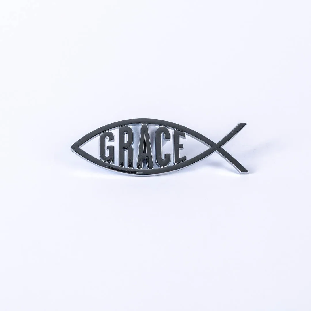 Display your faith with pride wherever you go with our Grace Auto Emblem, a beautiful and meaningful addition to any vehicle. This emblem features the iconic fish symbol, representing Christianity and the power of faith, paired with the word ìGraceî in sleek shiny silver against a contrasting black background. The elegant, 3-dimensional design not only gives it a modern, stylish look, but it also makes it a standout feature that will catch the eye of anyone who sees it.