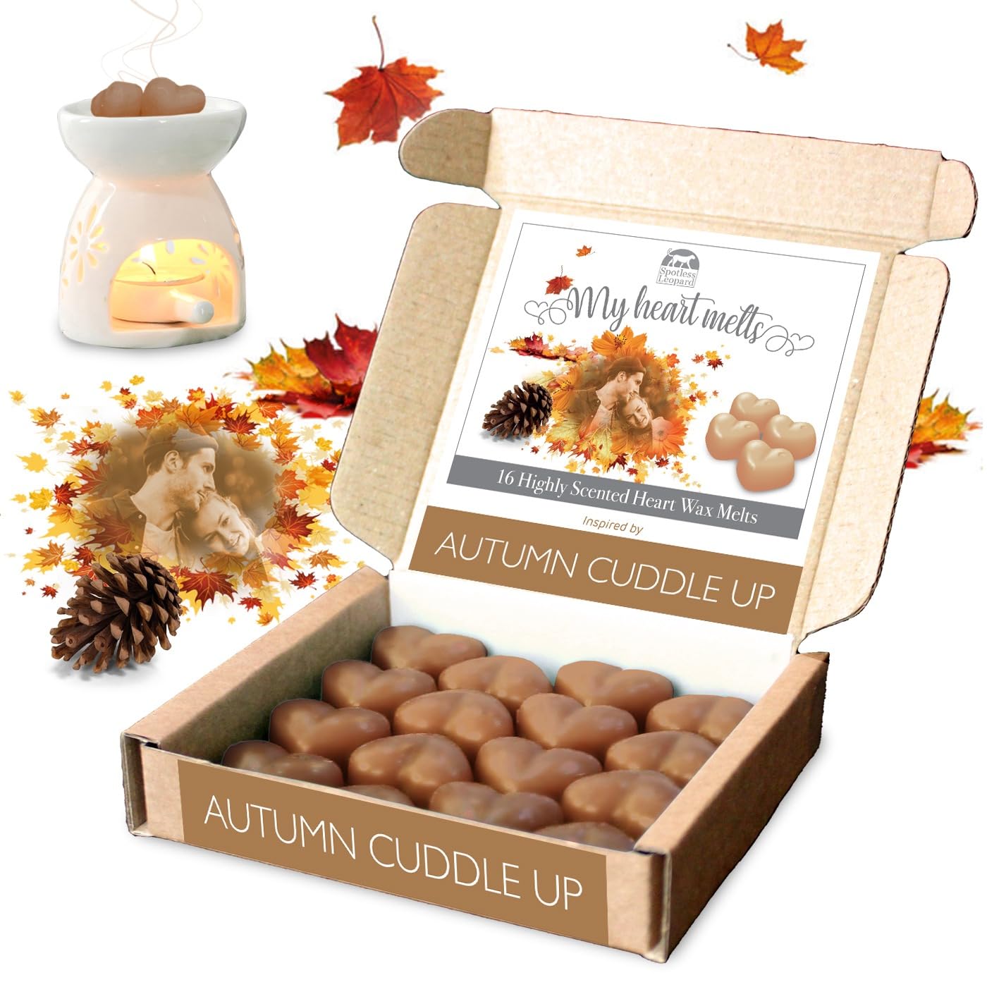 Autumn Cuddle Up Wax Melts – 16 x 5g Heart Shaped Melts Scented with Roasted Pumpkin and Ginger Fragrance as Autumn Wax Melts in a Gift Box, Alternative to Pumpkin Spice Candle