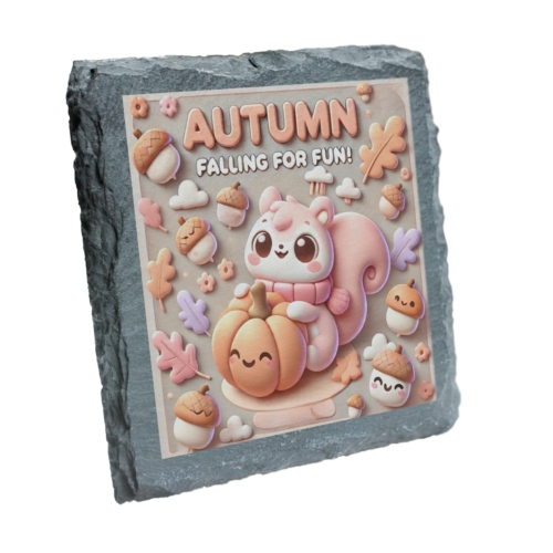 Embrace the coziness of autumn with this charming slate display featuring an adorable squirrel enjoying the fall festivities. The vibrant design captures the essence of the season with acorns, leaves, and pumpkins, making it the perfect addition to your seasonal decor. Made from high-quality natural slate, this freestanding piece is sturdy and stylish, perfect for adding a rustic touch to your home or office. Whether you’re looking for a unique decoration or a thoughtful gift, this slate display will bring joy and warmth to any space. Adorable Autumn Theme: Features a cute squirrel surrounded by vibrant acorns, leaves, and pumpkins. Premium Slate Construction: Crafted from natural slate with a rustic, textured finish for durability. Freestanding Design: Ideal for desktops, mantels, or bookshelves to add seasonal charm. Perfect Seasonal Gift: A delightful gift for friends and family to celebrate the autumn spirit. Charming Home Decor: Brings a cozy and playful vibe to any home or office during fall.