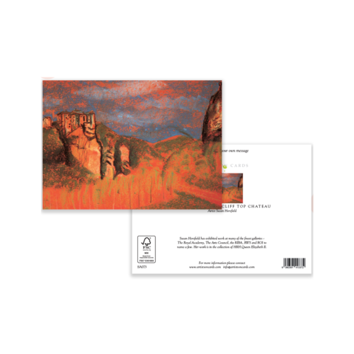 Horsfield’s French portfolio performs consistently for galleries and destination shops. Aveyron Gorge delivers impact from the rack—hot terracottas against a moody blue sky—with a clear place-story (“southwest France / Bonaguil”) that customers connect to. Works well in sets with Rupit, Navarra, and other European landscapes.