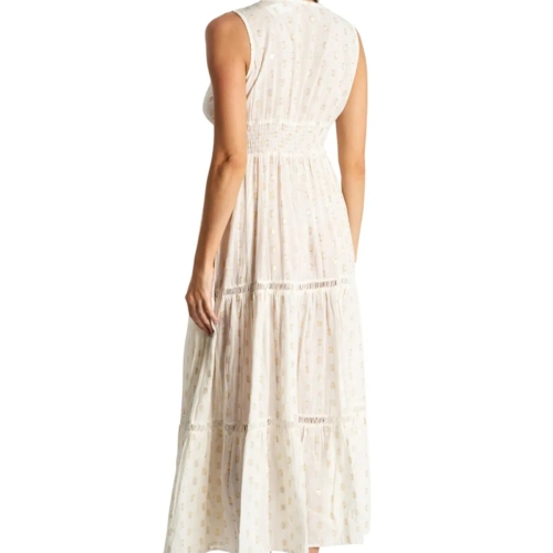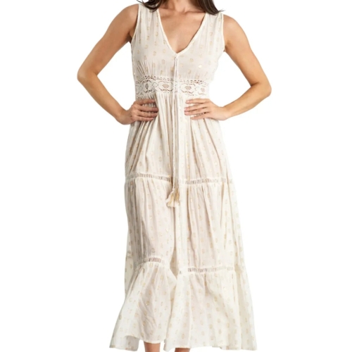 Azalea Tiered Maxi Resort Dress is a stylish and elegant choice Azalea Tiered Maxi Resort Dress by La Moda. Stay cool, effortlessly fashionable, and carefree this season in our sleeveless off-white tiered maxi dress. This pristine off white boho dress, with a V neck and a flared skirt, will never fail to look beautiful and ethereal. Pack of 6 Pcs