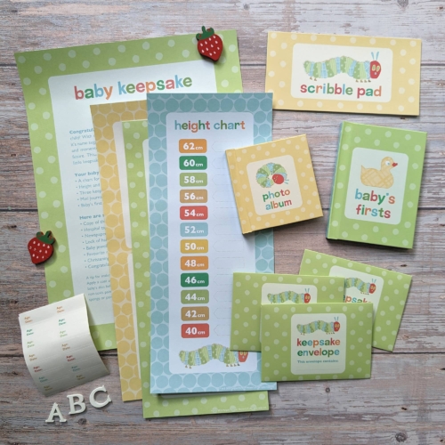 Featuring the famous Very Hungry Caterpillar artwork, this set includes; 3 keepsake envelopes, height & weight charts, mini photo album, mini record book, hand & foot print chart, baby’s first scribble pad & a mini keepsake trinket box. Box Dimensions: 295 x 100 x 100mm