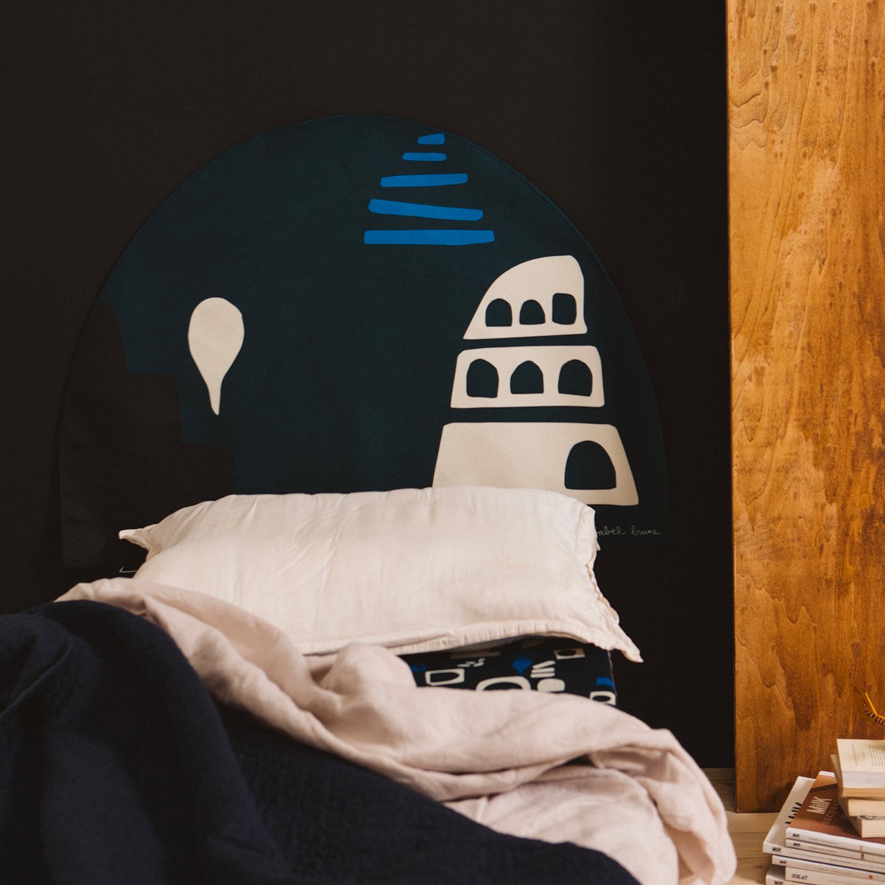 The Babylone Blue headboard can be found in a child’s bedroom as well as a parental bedroom. Thanks to its deep and intense colors, it brings warmth and softness to the room where it is needed the most.