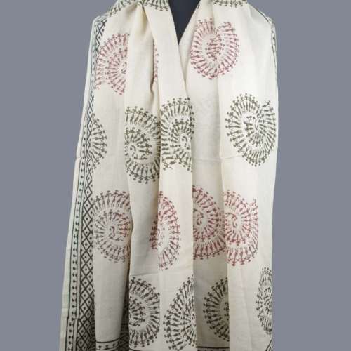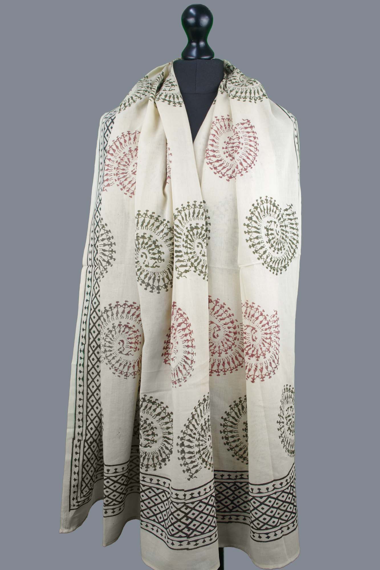 Bagru Beach Coverup Sarong Pareo – Warli Spiral Dance Beige