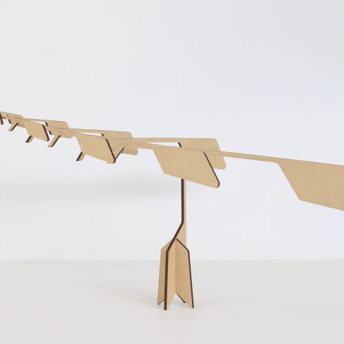 Hone your powers of concentration and precision by assembling this wooden mobile. Solving this challenging puzzle will reward you with a delicately poised temporary sculpture. The minimalist design is available in two colours: black and light brown.
