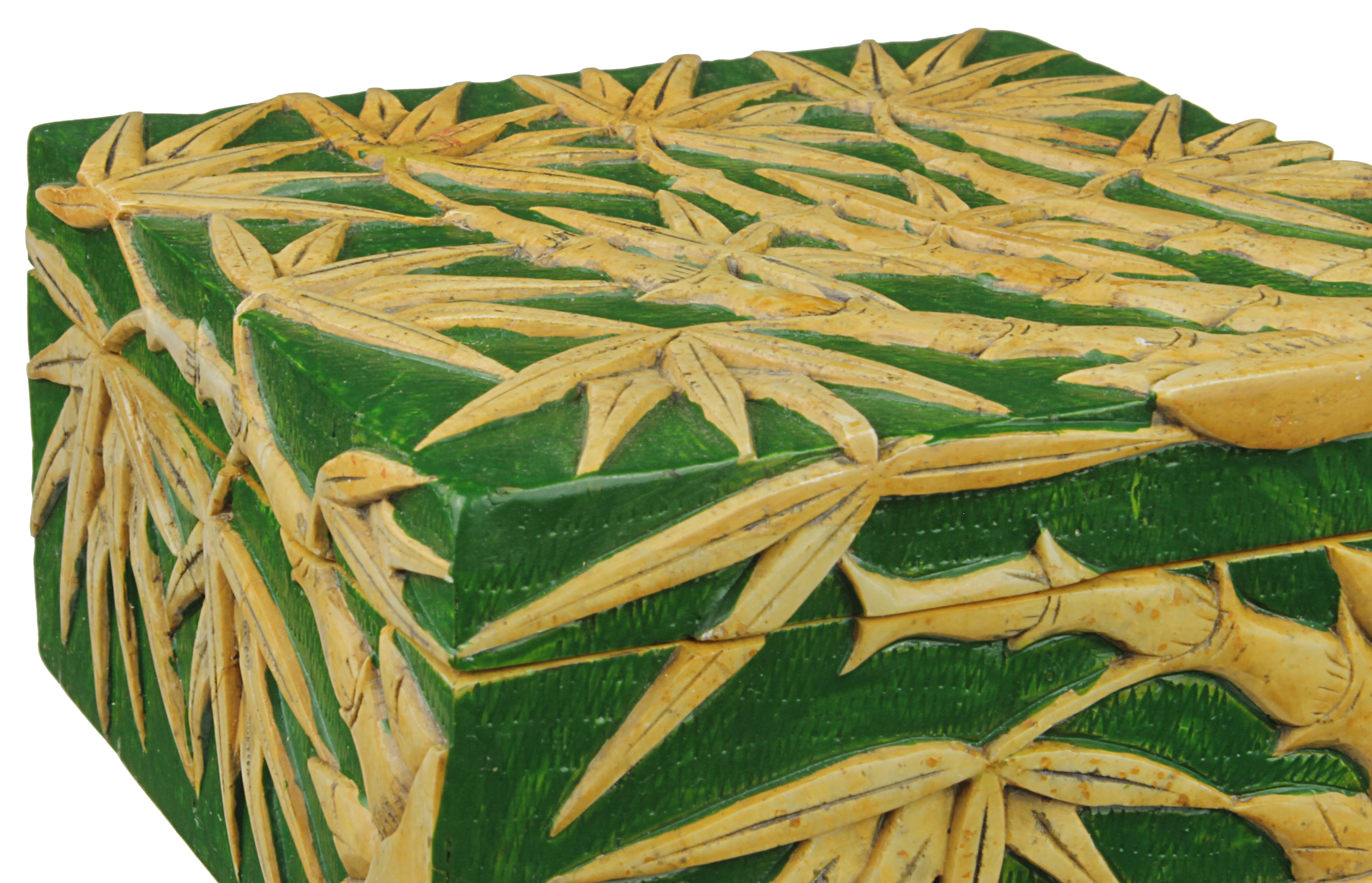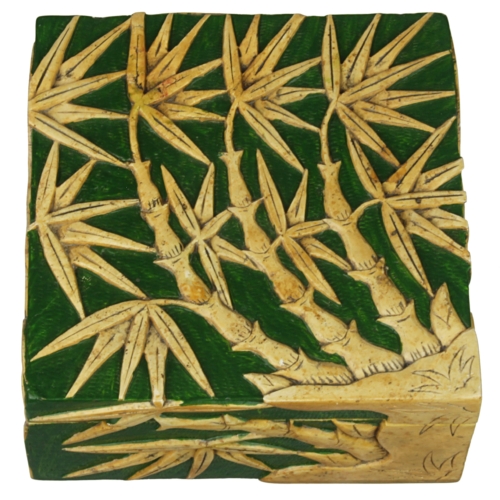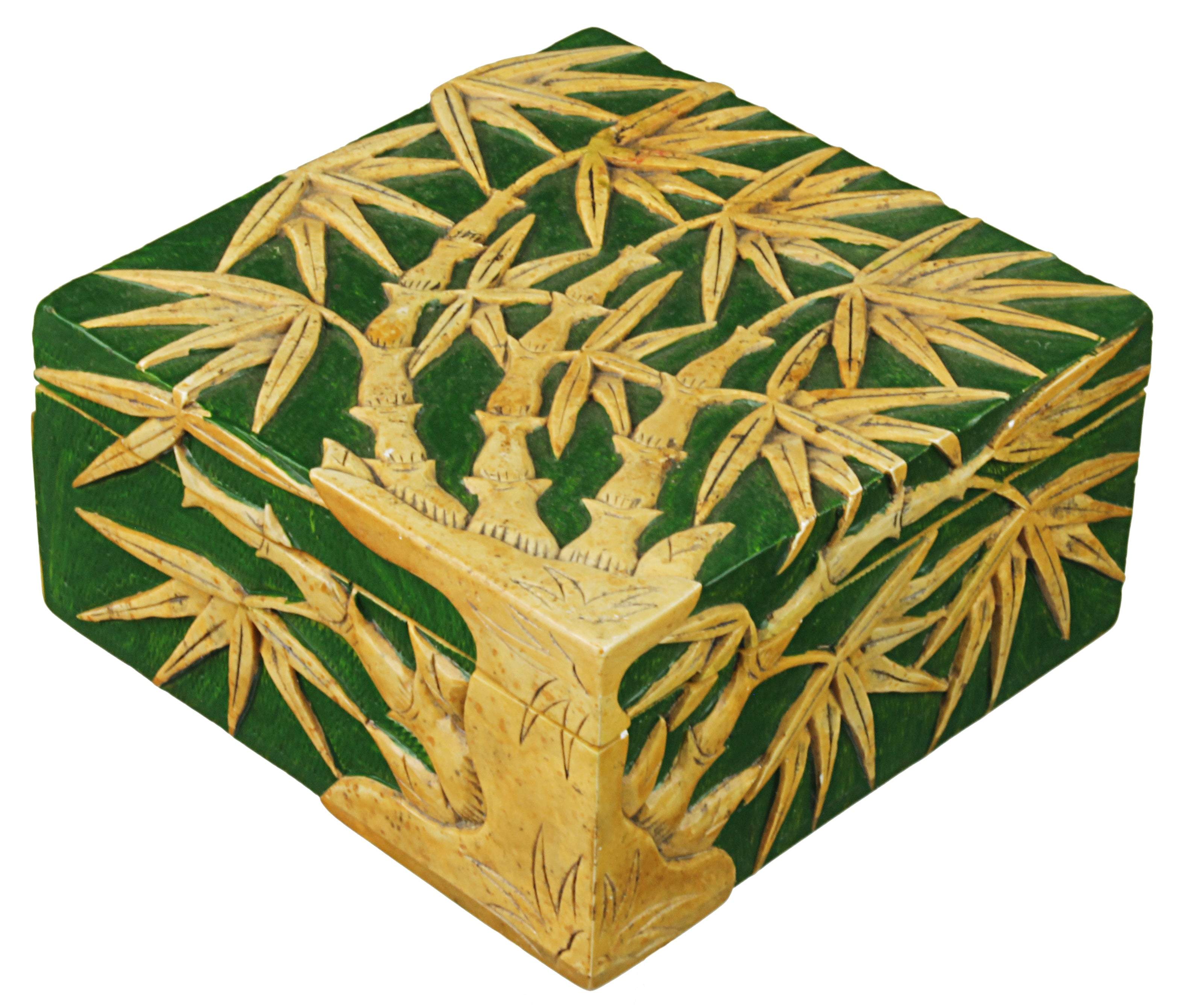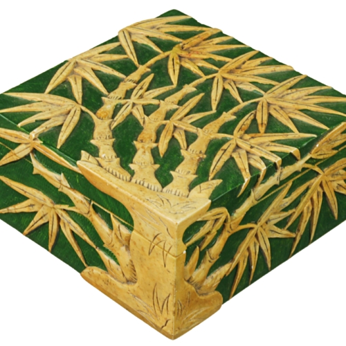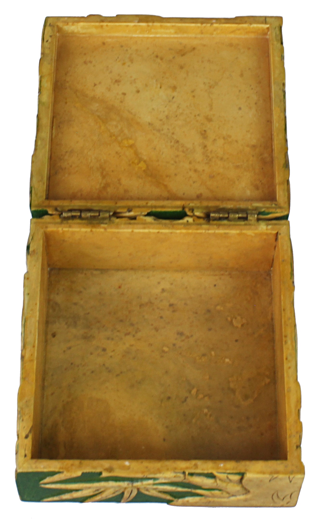 Soapstone is a soft rock that is capable of being carved and etched to great deal without fracturing.A Symbol of both aesthetics and talent, by Vietnamese workers. Mined from the mountains of Quang Ninh, these soapstone products were designed, carved, buffed, and painted to produce a complete masterpiece. Each of these products consist of a variety of colors and shades, lines and curves, shapes and sizes which are handled with care by many different artisans. Every product takes hours to finish and ultimately become one of a kind pieces. Therefore, soapstone products are truly a one of-a-kind character of Vietnam you cannot find anywhere else.This soapstone box is of a variety called “painted” meaning the majority (background) is painted. Sometimes it may appear that there are blemishes on top of the paint, however this is due to the artists using a very thin paint that still allows the variation of the natural soapstone to show through, giving it more character. The design is 3D, thus protrudes out of the box to give it a lifelike design and feel. The box is completed with a hinge that allows it to be used with ease.Though it is rock, the soapstone is fragile and will break if it is dropped. It will be shipped to you in a box surrounded by bubble-wrap to ensure its safety.This box measures 10cm x 10cm x 5cmEnjoy