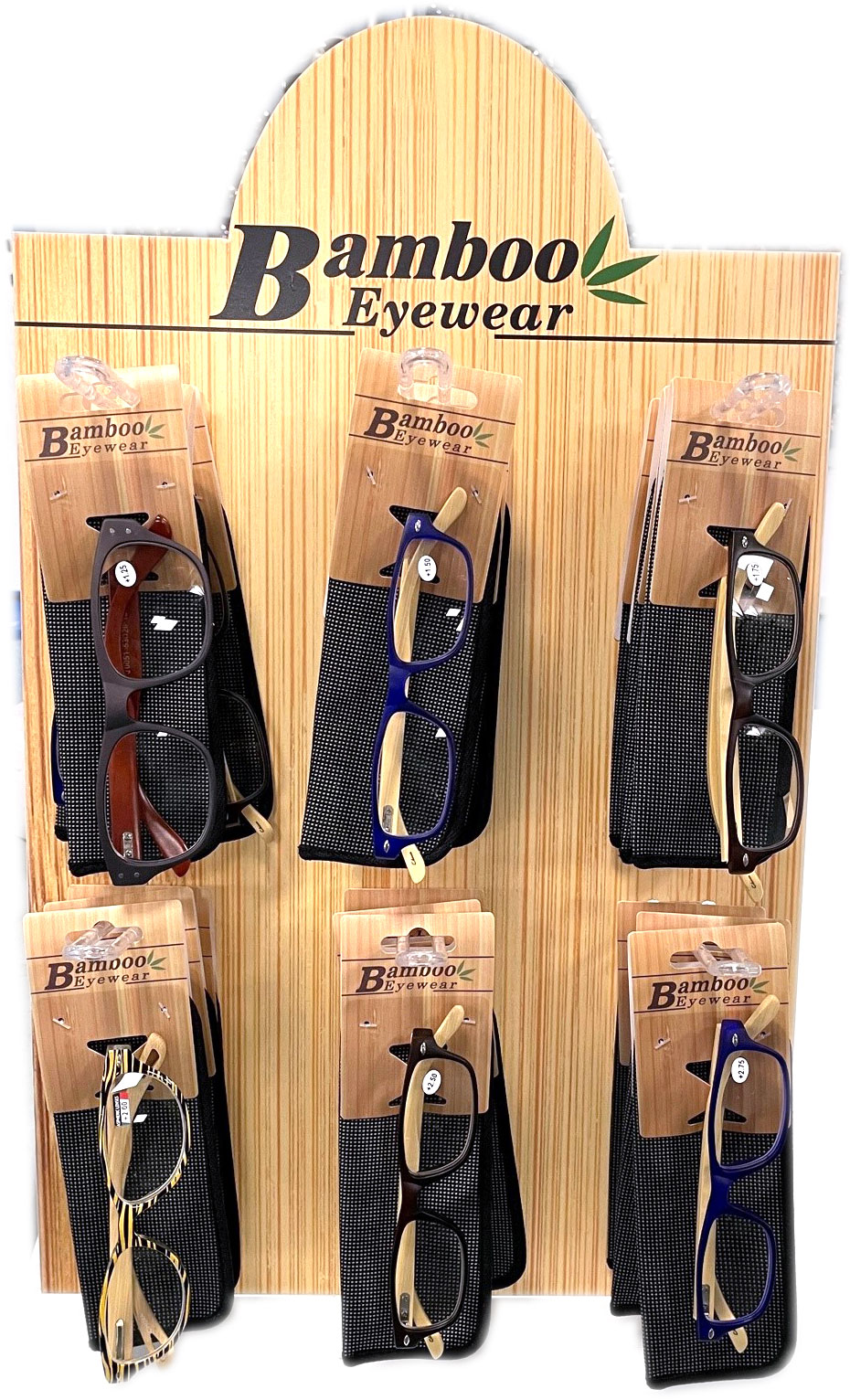 Enhance your customers’ reading experience with our eco-conscious Bamboo Reading Glasses Display, featuring 72 pairs of elegant, lightweight reading glasses crafted from sustainable bamboo. Each pair is thoughtfully designed for comfort and style, offering a natural look that appeals to today’s environmentally aware shoppers. Accompanied by a soft, protective case, these glasses are perfect for everyday use and easy storage.