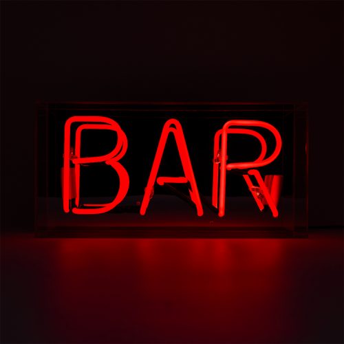 This ‘Bar’ neon light is available in red, encased in a beautiful glossy acrylic box with a mirror back. The perfect statement neon lighting piece for your home or unique gift for that special person.
