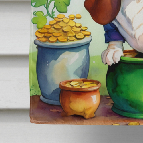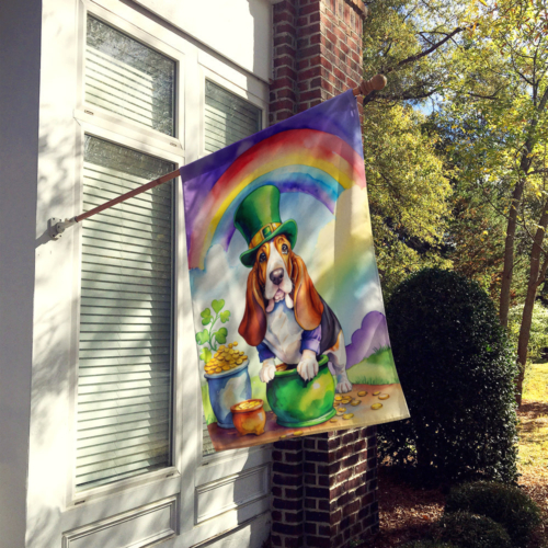 House Flag featuring breed specific Basset Hound artwork. Celebrate St Patrick’s Day with this St Patrick’s Day Large Flag. Presenting our Heavy Duty Polyester House Size Decorative Sleeve Pole Flag, a vibrant addition to enhance the aesthetic appeal of your home. This large decorative flag, measuring approximately 28 x 40 inches, offers ample coverage and visibility. Each flag is meticulously sewn and made individually, ensuring a unique piece that may slightly vary in size. It’s a sleeve pole flag, designed to fit a standard decorative flag pole effortlessly. Please note that the flag pole and bracket are not included and should be purchased separately. What sets our flag apart is its dual-sided print. The design is mirrored on both sides of the fabric, allowing for uniform visibility regardless of the angle. Printed in full color, our flag showcases vibrant hues that truly stand out. To ensure lasting vibrancy and durability, the dyes are heat-set into the fabric. This ensures your flag remains bright and captivating through various weather conditions. Elevate the look of your home with our Heavy Duty Polyester House Size Decorative Sleeve Pole Flag!