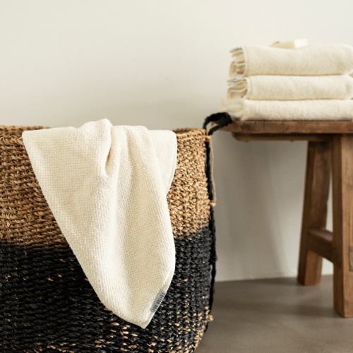 By using warm colours, in combination with a unique woven structure, these towels are real eye-catchers in the bathroom.