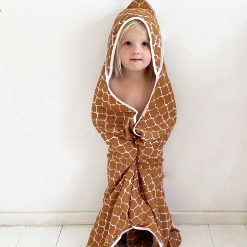 The Witlof for kids bathcape / wrapper ‘Once upon a dream’ is extra large so that you can use it even long after your baby has been born. Because it is double layered, the cape is nice and warm and absorbs very well. There is a loop attached to the cap of the cape, so you can also hang it up. And because of a subtile opening in the middle, the cape can be used in the Maxi-Cosi as well. Comes in a trendy hazel brown and offwhite Moroccan design. The bathcape is finished with an offwhite rib piping. The pompom gives the cape a cool touch.