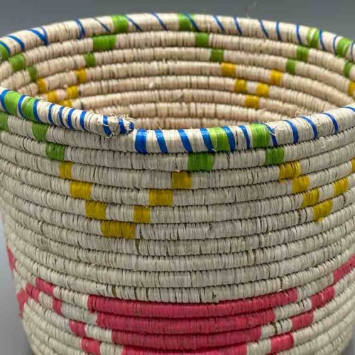 The Batwa – the Twa people, a “pygmy” people – live in the border area of southwestern Uganda, northwestern Rwanda and eastern Congo, in the area of the Ruwenzori Mountains, in the Bwindi Impenetrable Forest. They live among a native gorilla population just like we live among whitetail deer. 5 1/8″ tall x 6 1/2” diameter (13 x 16.5 cm)