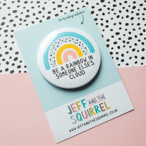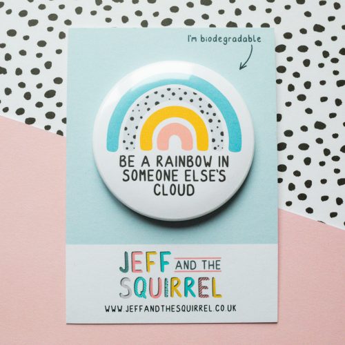 Badge reads “Be a rainbow in someone else’s cloud”. Sure to put a smile on anyone’s face 🙂