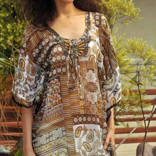 Beaded Kaftan: Embrace Boho Elegance Inspired by the desert landscapes and style-cues of Marrakesh, our Beaded Kaftan is a must-have addition to your summer wardrobe. This stunning piece seamlessly blends traditional craftsmanship with contemporary fashion, and making it perfect for various occasions. Whether you are planning a day at the beach, a casual outing, or wanting to add a touch of boho elegance to your look, this kaftan has you covered. It features intricate beadwork that highlights the rich cultural heritage of Marrakesh, and provides an exquisite detail that will set you apart in any crowd. Wearing a Beaded Kaftan over a swimsuit not only offers a layer of sophistication and style, but also provides necessary coverage from the sun. The airy fabric ensures comfort in warm weather, because it allows your skin to breathe. The flowing silhouette makes it versatile for different body types, and it can easily transition from beachwear to a chic evening outfit with the right accessories. Pair it with a wide-brimmed hat and sandals for a relaxed vibe, or dress it up with statement jewelry and heels for a night out. This flexibility makes the Beaded Kaftan an essential piece for the modern boho fashionista, and allows you to express your creative spirit effortlessly. For those who prefer a more casual look, the Beaded Kaftan can be paired with shorts for a laid-back, yet stylish ensemble. This pairing is ideal for daytime events, shopping trips, or casual gatherings where comfort is key. The beaded embellishments add a touch of glamour, while the flowing design provides ease of movement. This kaftan is also easy to accessorize, and you can experiment with different looks by adding belts, scarves, or layering with other pieces. Its timeless design ensures that it remains a staple in your wardrobe for years to come and aligns with the ethos of sustainability and mindful fashion. By investing in a versatile piece like this, you support the craft and passion that goes into creating each Beaded Kaftan and embrace a lifestyle that values quality and creativity. The inspiration behind our Beaded Kaftan comes from the heart of Marrakesh, and each piece tells a unique story. The beads are meticulously sewn by skilled artisans, reflecting the vibrant colors and patterns found in Moroccan markets and desert landscapes. This dedication to tradition and modern design elements is what makes our Beaded Kaftan stand out. When you wear this piece, you are not just adopting a fashion trend, but celebrating a rich cultural heritage. This connection to craft and culture fosters a deeper appreciation for the garments we wear and the stories they tell. Shop our Beaded Beauty Kaftan at FreePeople.com, and immerse yourself in the boho magic that this piece represents. In conclusion, our Beaded Kaftan is more than just a piece of clothing; it is an expression of style, culture, and creativity. Its versatility allows you to wear it in multiple ways so you can enjoy its beauty on different occasions. Whether you are dressing up for a special event or looking for a chic cover-up to wear over your swimsuit, this kaftan meets your needs. Embrace the desert-inspired elegance of Marrakesh and make a statement with this exquisite piece in your wardrobe. Explore the full potential of your style and creativity with our Beaded Kaftan, and let it become a beloved staple in your summer and casual wear collection. Material: 100% Polyester Pack Details: 6Pcs