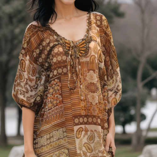 Beaded Kaftan: Embrace Boho Elegance Inspired by the desert landscapes and style-cues of Marrakesh, our Beaded Kaftan is a must-have addition to your summer wardrobe. This stunning piece seamlessly blends traditional craftsmanship with contemporary fashion, and making it perfect for various occasions. Whether you are planning a day at the beach, a casual outing, or wanting to add a touch of boho elegance to your look, this kaftan has you covered. It features intricate beadwork that highlights the rich cultural heritage of Marrakesh, and provides an exquisite detail that will set you apart in any crowd. Wearing a Beaded Kaftan over a swimsuit not only offers a layer of sophistication and style, but also provides necessary coverage from the sun. The airy fabric ensures comfort in warm weather, because it allows your skin to breathe. The flowing silhouette makes it versatile for different body types, and it can easily transition from beachwear to a chic evening outfit with the right accessories. Pair it with a wide-brimmed hat and sandals for a relaxed vibe, or dress it up with statement jewelry and heels for a night out. This flexibility makes the Beaded Kaftan an essential piece for the modern boho fashionista, and allows you to express your creative spirit effortlessly. For those who prefer a more casual look, the Beaded Kaftan can be paired with shorts for a laid-back, yet stylish ensemble. This pairing is ideal for daytime events, shopping trips, or casual gatherings where comfort is key. The beaded embellishments add a touch of glamour, while the flowing design provides ease of movement. This kaftan is also easy to accessorize, and you can experiment with different looks by adding belts, scarves, or layering with other pieces. Its timeless design ensures that it remains a staple in your wardrobe for years to come and aligns with the ethos of sustainability and mindful fashion. By investing in a versatile piece like this, you support the craft and passion that goes into creating each Beaded Kaftan and embrace a lifestyle that values quality and creativity. The inspiration behind our Beaded Kaftan comes from the heart of Marrakesh, and each piece tells a unique story. The beads are meticulously sewn by skilled artisans, reflecting the vibrant colors and patterns found in Moroccan markets and desert landscapes. This dedication to tradition and modern design elements is what makes our Beaded Kaftan stand out. When you wear this piece, you are not just adopting a fashion trend, but celebrating a rich cultural heritage. This connection to craft and culture fosters a deeper appreciation for the garments we wear and the stories they tell. Shop our Beaded Beauty Kaftan at FreePeople.com, and immerse yourself in the boho magic that this piece represents. In conclusion, our Beaded Kaftan is more than just a piece of clothing; it is an expression of style, culture, and creativity. Its versatility allows you to wear it in multiple ways so you can enjoy its beauty on different occasions. Whether you are dressing up for a special event or looking for a chic cover-up to wear over your swimsuit, this kaftan meets your needs. Embrace the desert-inspired elegance of Marrakesh and make a statement with this exquisite piece in your wardrobe. Explore the full potential of your style and creativity with our Beaded Kaftan, and let it become a beloved staple in your summer and casual wear collection. Material: 100% Polyester Pack Details: 6Pcs