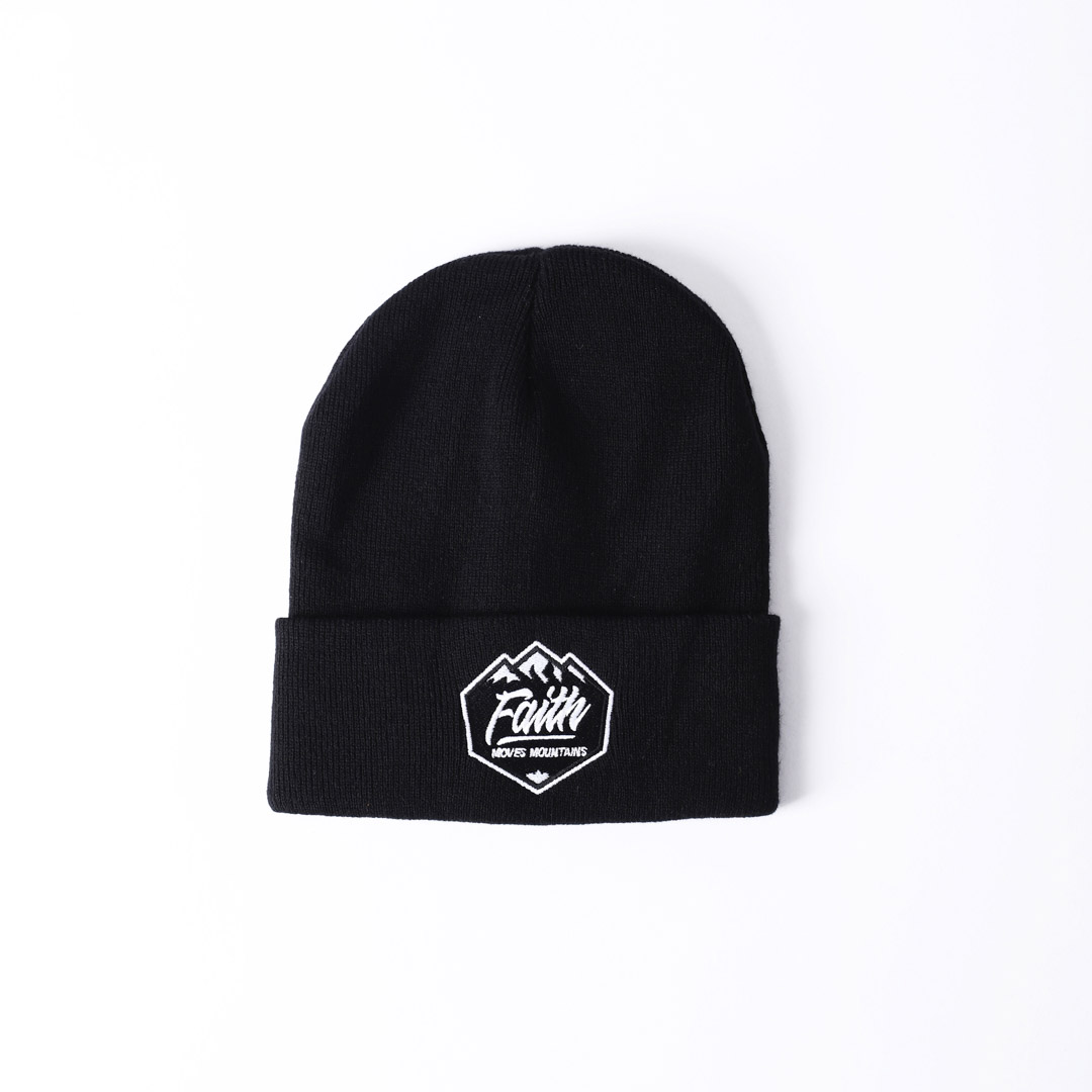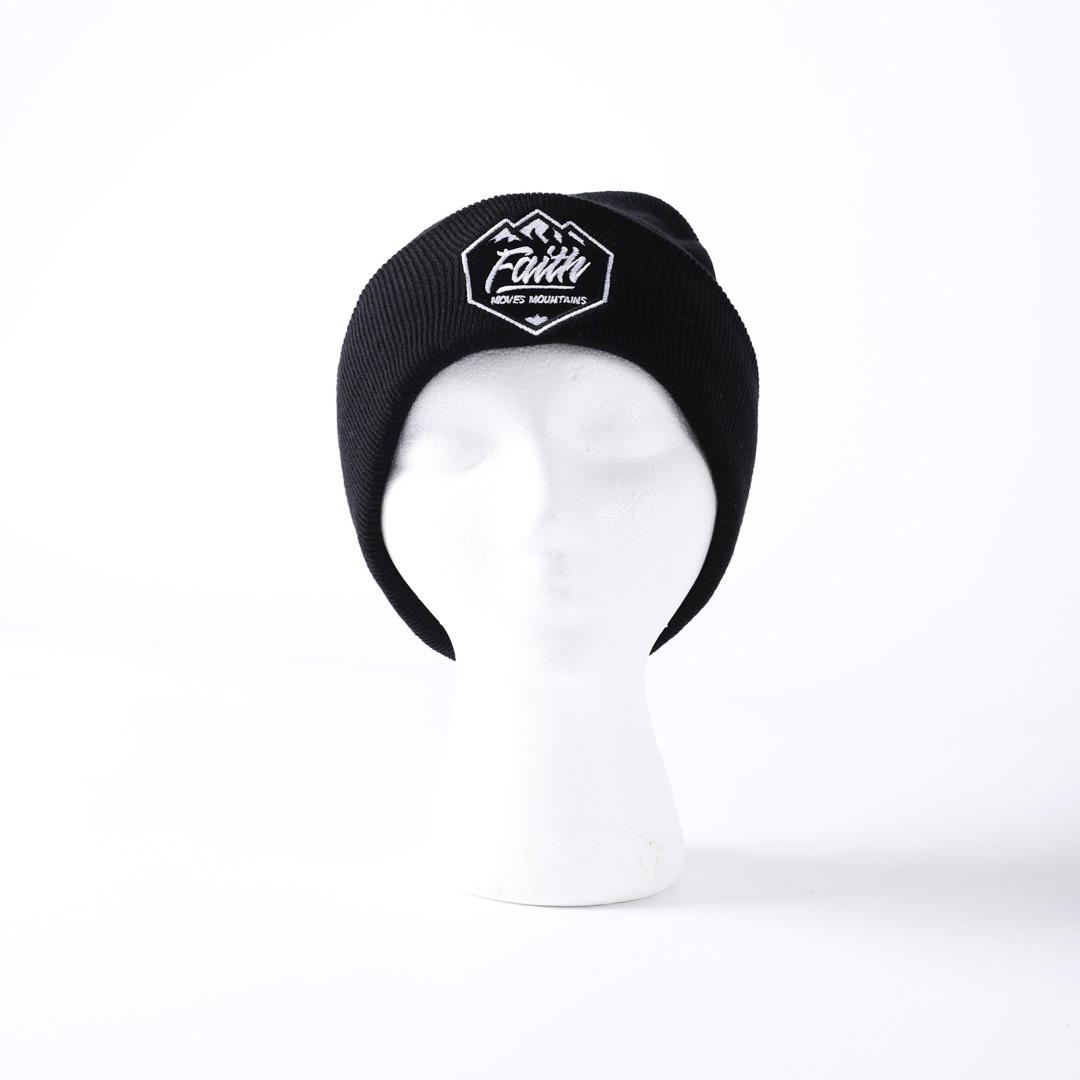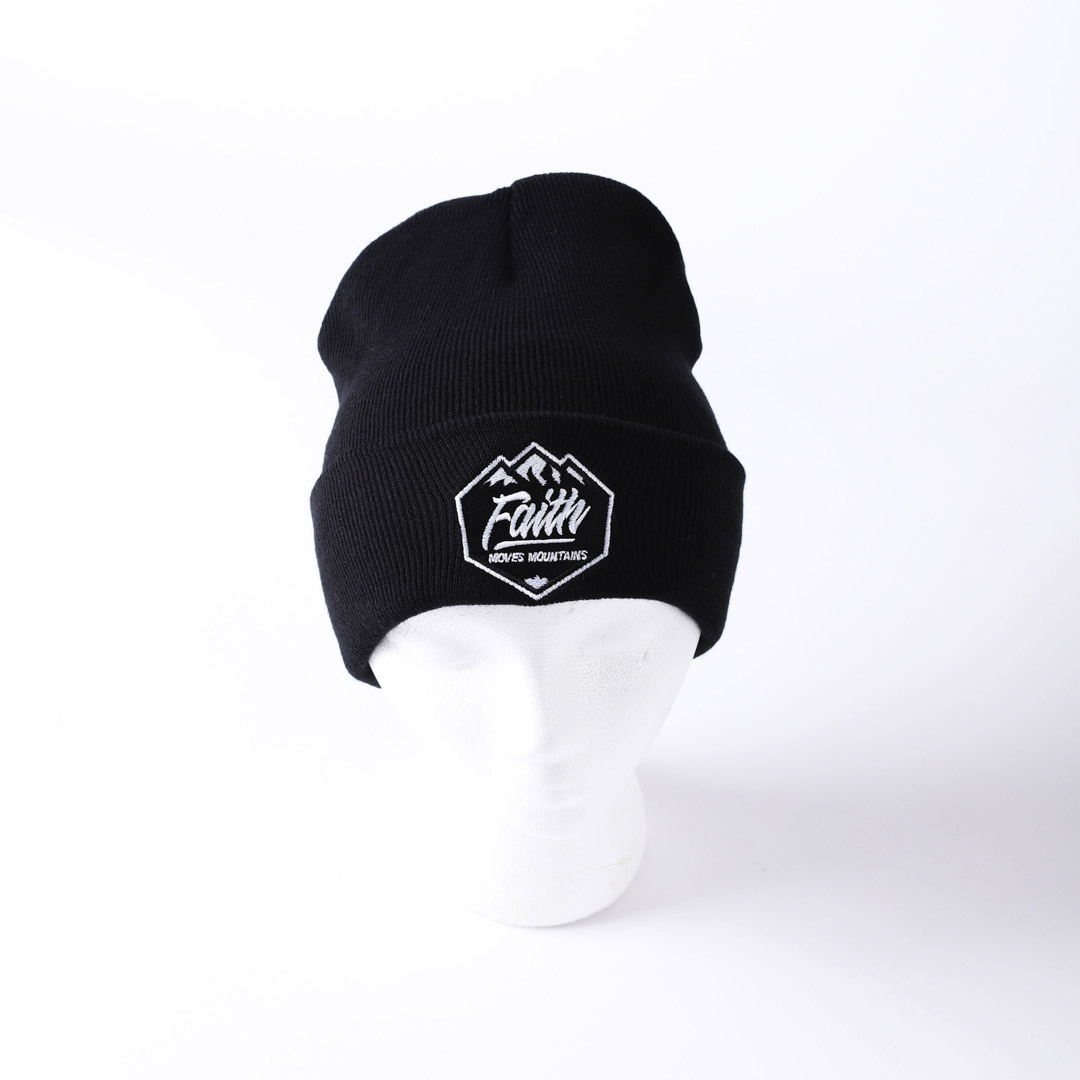 Keep the faith and stay warm with this inspirational black beanie hat. Made from a soft, stretchy cotton knit, this one-size-fits-most beanie features the words Faith Moves Mountains embroidered in white against a black patch. The sleek, solid black color matches everything while stylishly sharing an uplifting message.