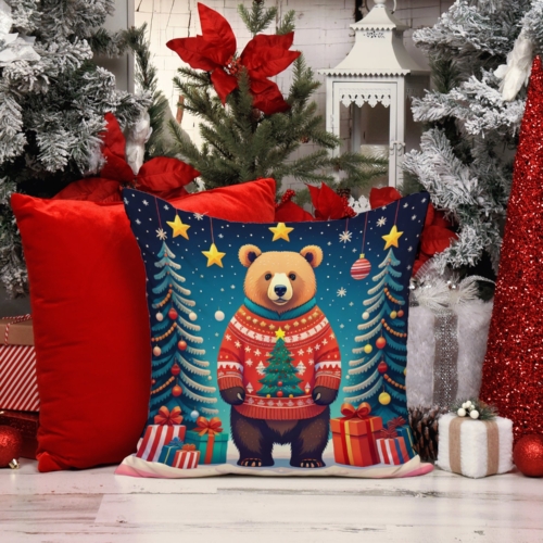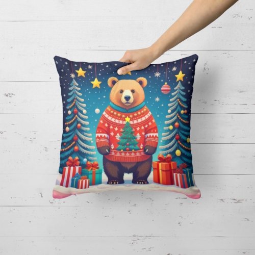 Throw Pillow featuring breed specific Bear artwork. Celebrate Christmas with this Christmas Pillow. Revitalize your outdoor or indoor living space with Caroline’s Treasures 18×18 Fabric Decorative Pillow. With a generously sized dimension of approximately 18 inches by 18 inches, this pillow makes a comfortable and aesthetic addition to any seating area. Made from a unique, water-resistant material developed by Caroline’s Treasures, the pillow sham is 100% polyester fabric that’s durable and ready to weather any condition. Its vibrant, full-color artwork will not fade over time as it is dyed with color-fast dyes. Whether you place it on your patio furniture, porch, veranda, or indoor couch, its soft canvas fabric ensures a cozy experience. The pillow is handcrafted in the United States, featuring a sham created from three pieces of fabric and a polyester insert for enduring shape and overstuffed comfort. Despite being robustly built to endure the outdoors, it is as soft and snug as your favorite indoor cushions. Please note, as all our pillows are handmade, sizes may vary slightly, adding to the charm of this unique decorative item.
