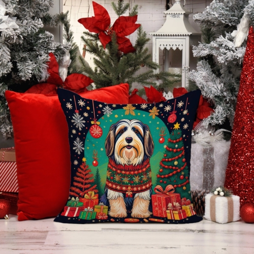 Bearded Collie Christmas Throw Pillow