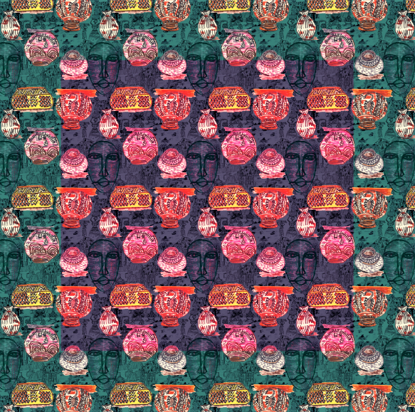 Beautiful Nostalgia is a collection of Limited edition scarves and fabrics designed from a montage of art inspired by the artist’s nostalgia of her happy childhood growing up in her beautiful maternal village home in Nigeria, West Africa.