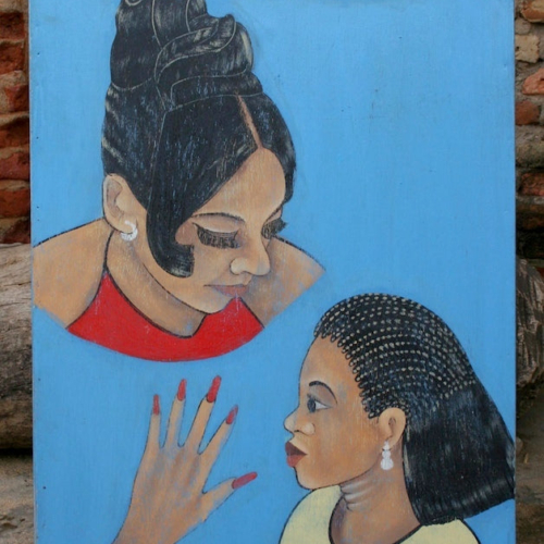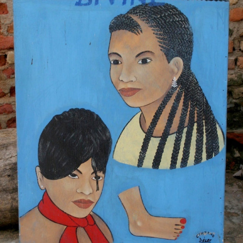 These are two separate signs, sold separately. The price for each is $300. They were both painted by the same artist, on commission for the same customer, in the same style, to advertise the same business. They were used together, hinged at the top, so the unit was visible from two sides. We take the two apart and sell them separately. These two measure 37 1/4 x 24 1/2″ (95 x 62 cm). The other image in the thumbnails is the image on the other half of this pair of signs.