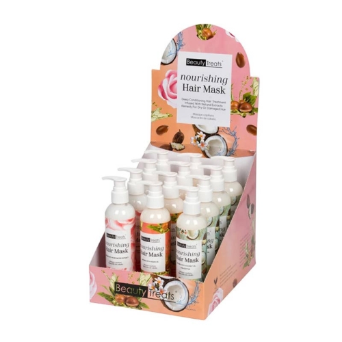 Beauty Treats 108x Nourishing Hair Mask. Moisturizing and conditioning for soft, smooth hair. Deep conditioning hair treatment infused with Jojoba Oil, Shea Butter & Vitamin E. Remedy for Dry or Damaged Hair. Made in Taiwan. 12 pcs in box.