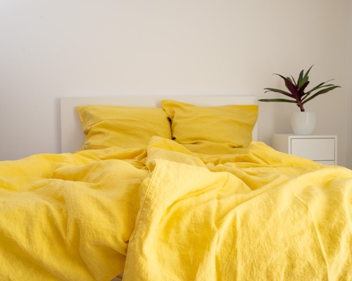 Bundle of 4 Bedding sets linen stonewashed: 1x Bedding set linen stonewashed – Blue, 1x Bedding set linen stonewashed – Dark Green, 1x Bedding set linen stonewashed – Yellow, 1x Bedding set linen stonewashed – Beige