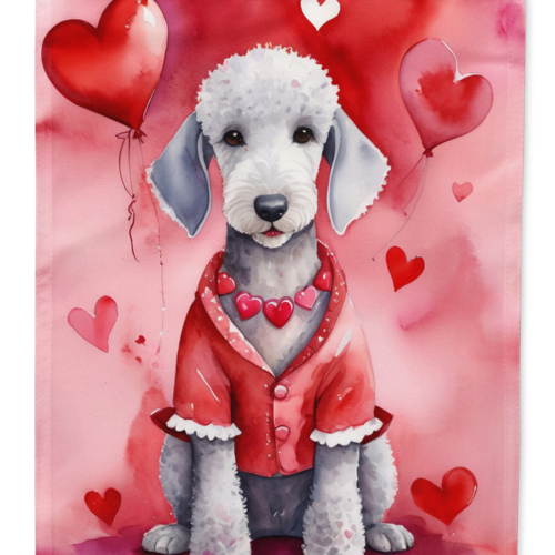 House Flag featuring breed specific Bedlington Terrier artwork. Celebrate Valentine’s Day with this Valentine’s Day Large Flag. Presenting our Heavy Duty Polyester House Size Decorative Sleeve Pole Flag, a vibrant addition to enhance the aesthetic appeal of your home. This large decorative flag, measuring approximately 28 x 40 inches, offers ample coverage and visibility. Each flag is meticulously sewn and made individually, ensuring a unique piece that may slightly vary in size. It’s a sleeve pole flag, designed to fit a standard decorative flag pole effortlessly. Please note that the flag pole and bracket are not included and should be purchased separately. What sets our flag apart is its dual-sided print. The design is mirrored on both sides of the fabric, allowing for uniform visibility regardless of the angle. Printed in full color, our flag showcases vibrant hues that truly stand out. To ensure lasting vibrancy and durability, the dyes are heat-set into the fabric. This ensures your flag remains bright and captivating through various weather conditions. Elevate the look of your home with our Heavy Duty Polyester House Size Decorative Sleeve Pole Flag!