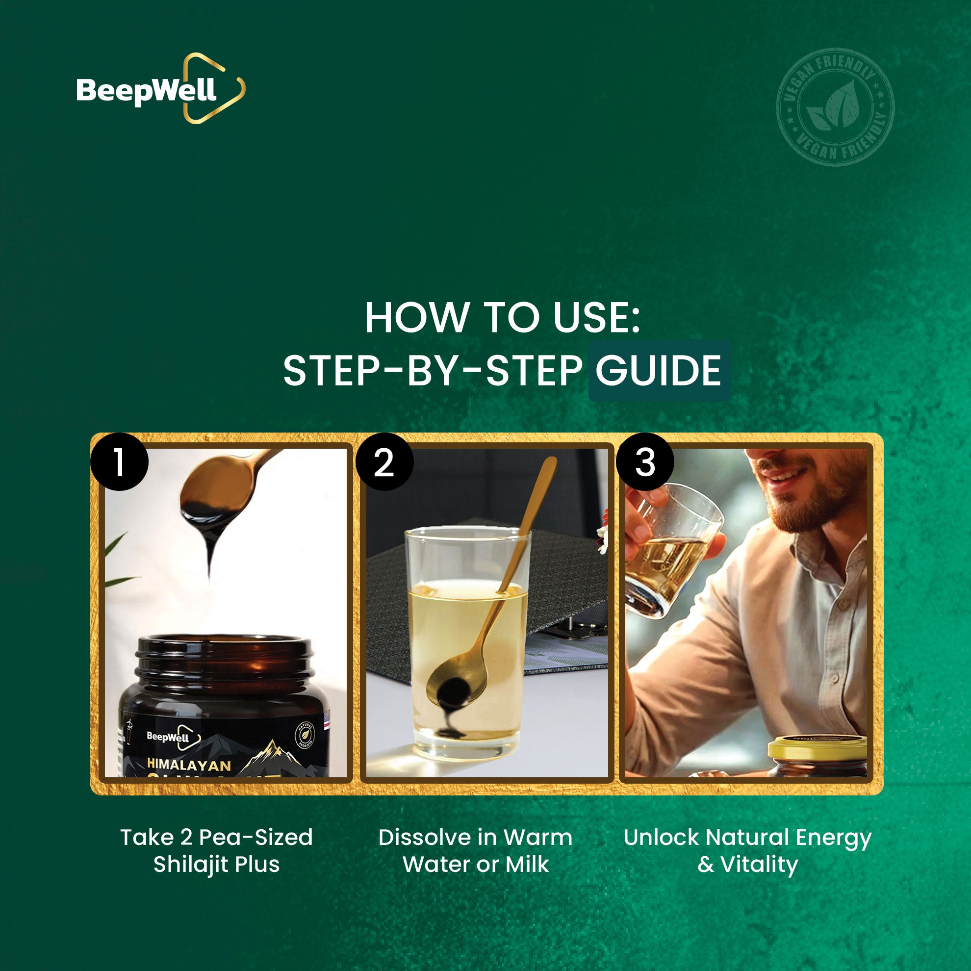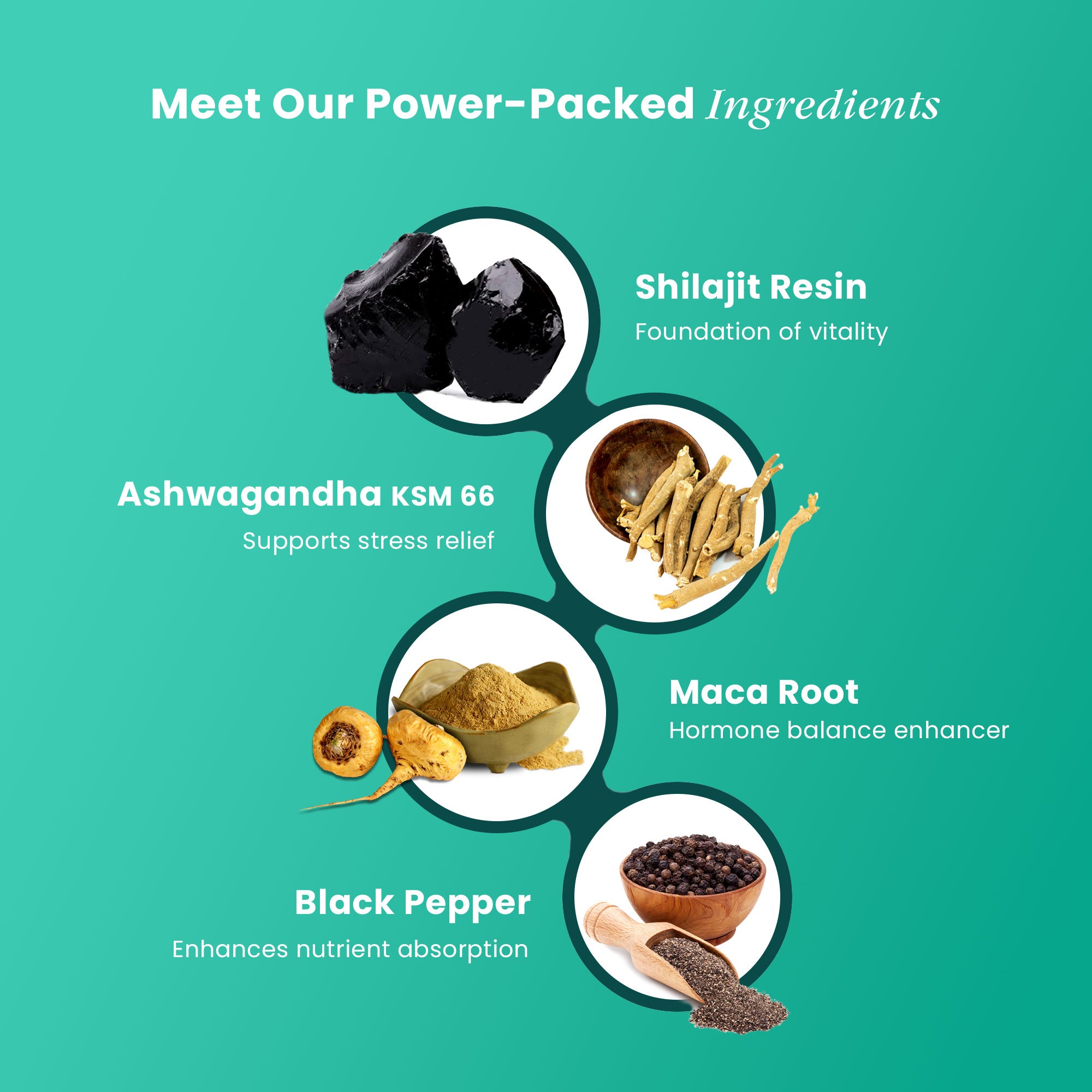 🏔️ Sourced from 16,000 Ft Altitude – Himalayan Origin Harvested from the high-altitude Himalayan region, this natural Shilajit resin is raw and carefully processed. Each batch is verified for quality, safety, and consistency. 🌿 Premium Resin with Ayurvedic Ingredients A balanced blend of Shilajit, Ashwagandha, Maca Root, and Black Pepper, crafted to complement your daily routine. Contains Fulvic Acid and 85+ trace minerals, traditionally used in Ayurvedic practices. 🧪 Naturally Bitter Taste – Rich in Minerals The distinctive taste reflects the resin’s natural mineral composition and traditional form. No added flavours or fillers – just minimally processed Shilajit resin. 🍯 Thick Resin Texture – Minimal Processing Its dense, sticky texture is a result of minimal processing, helping preserve the natural compounds and mineral content of Himalayan Shilajit. 📦 50 Servings – Simple Daily Use Each glass jar offers 50 measured servings. Use a pea-sized (750mg) portion in warm water, milk, or tea as part of your daily wellness routine. 🌱 Traditional Resin Supplement for Everyday Use Suitable for both men and women, this plant-based supplement fits into a balanced lifestyle for those interested in traditional herbal products.