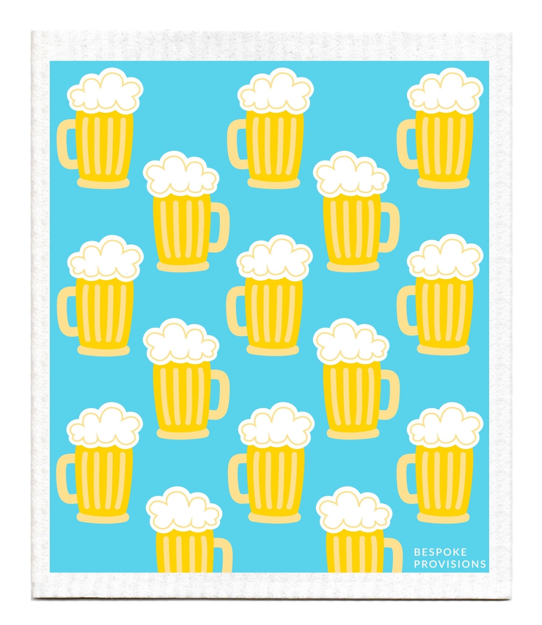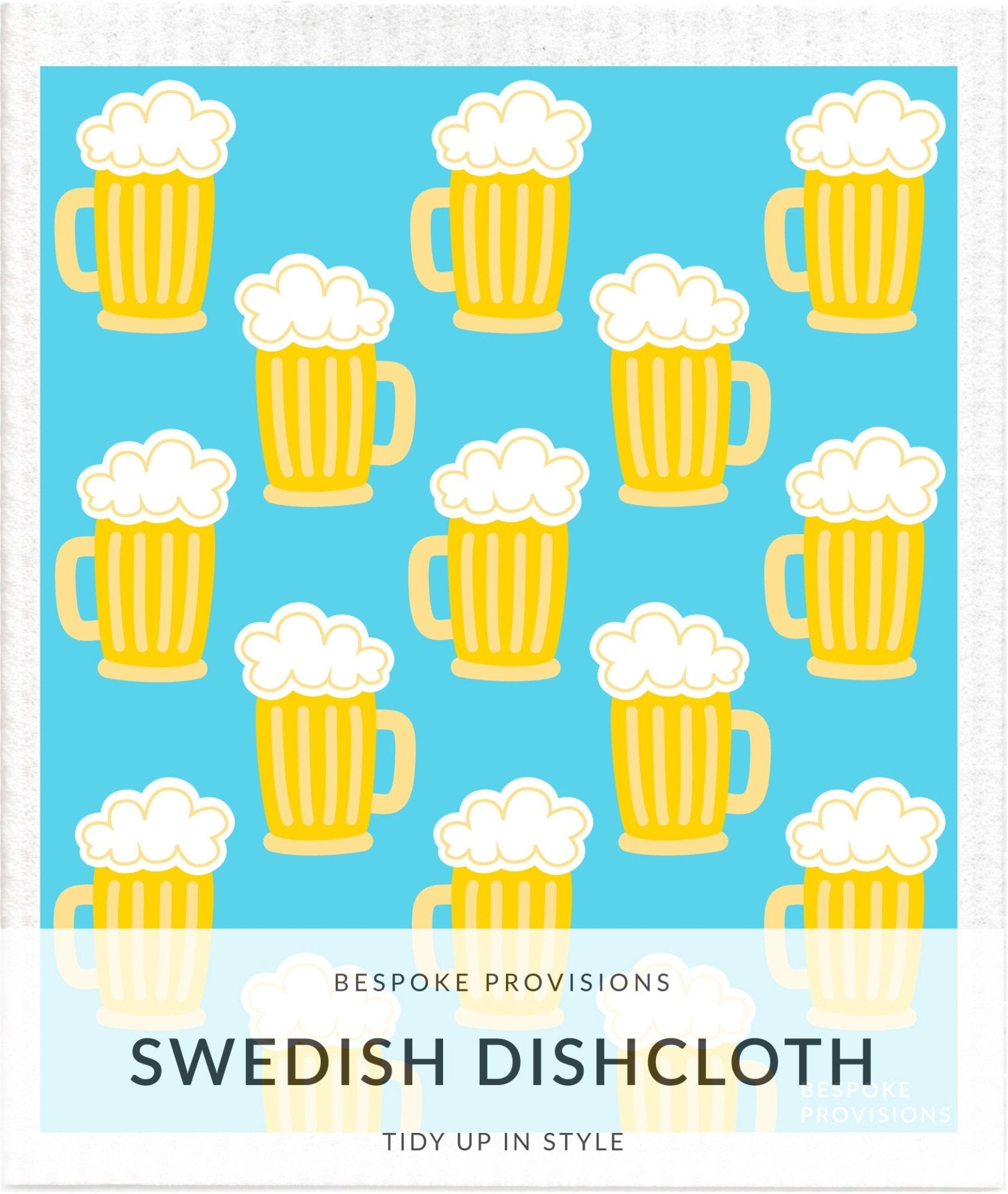Our fun Beer Mugs Swedish Dishcloths are made from an all natural pairing of cotton/cellulose and the material is more hygienic than a sponge.