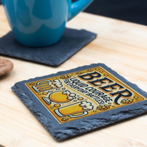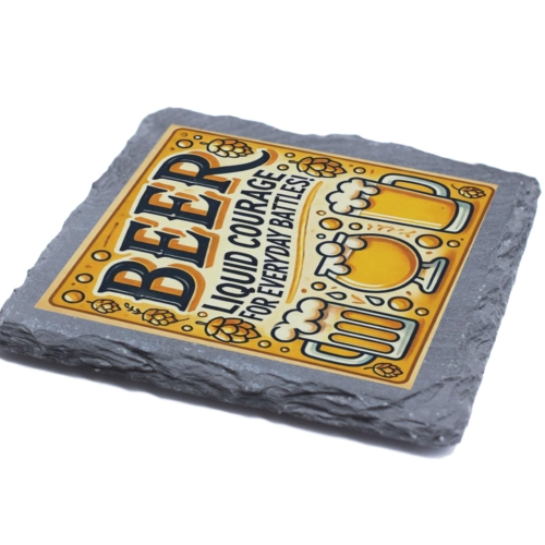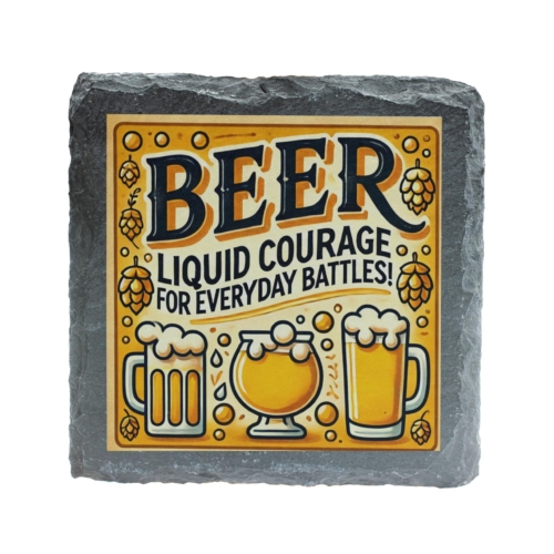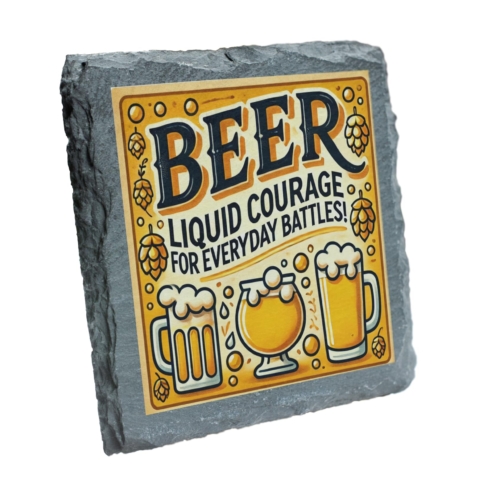 Elevate your drink game with this unique rustic slate coaster featuring the spirited phrase “Beer: Liquid Courage for Everyday Battles.” The bold yellow design paired with charming beer mugs and hops adds a touch of humor and vibrance to your space. Handcrafted from natural slate, this durable coaster not only protects your surfaces but also brings character to your table setting. Whether you?re hosting a beer night or looking for the perfect gift for a beer enthusiast, this coaster is both practical and memorable. Cheers to tackling everyday battles with a pint in hand! Bold Beer Design: Displays the fun phrase “Beer: Liquid Courage for Everyday Battles” with eye-catching beer mug illustrations. Natural Slate Material: Crafted from premium slate with a textured, rustic edge for durability and style. Perfect for Beer Enthusiasts: A must-have accessory for beer lovers, home bars, or themed gatherings. Thoughtful Gift Idea: Ideal for beer drinkers, friends, and family, or as a quirky housewarming gift. Functional & Stylish: Protects furniture while adding a humorous and charming touch to your decor.