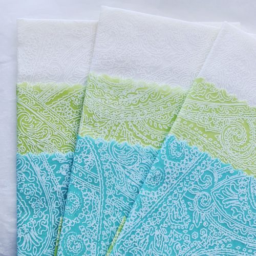 A delicate fabric in soft pastel colours with a lace flower design in a pack of 3 beeswax wraps. We’ve chosen the optimal sizes to give you the most options for wrapping. The fabric is translucent once wrapped so you can make out coloured veg inside!