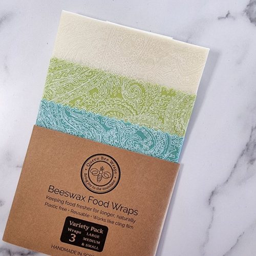 Our reusable food wraps are made with a special blend of natural ingredients giving the cloth natural antibacterial and antifungal properties. A breathable beeswax wrap keeping your food fresher for longer. Our wraps are pine resin free, great if you are allergic to it.