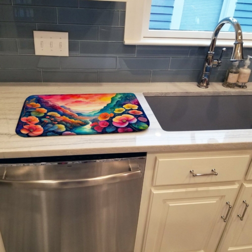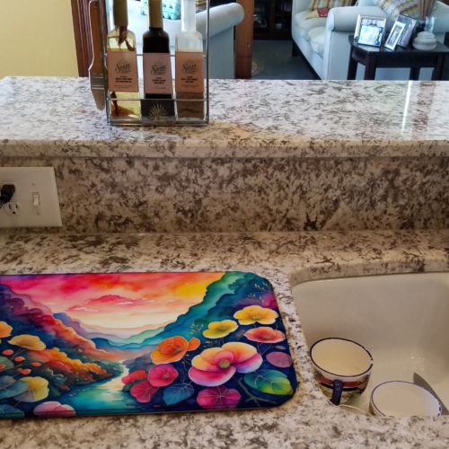 Say goodbye to messy countertops and soggy dish towels with our innovative dish drying mat. Our high-quality dish drying pad is designed to keep your countertops dry while offering a stylish and efficient solution. Whether you’re air drying dishes, glasses, stemware, silverware, pots, pans, bottles, or even fruits and vegetables, our dish mat is the perfect choice. The 14 inches x 22 inches size fits most counters and dish drying racks, and the non-slip design ensures stability. Made with water-absorbent polyester and a polyurethane foam insert, our dish drying mat is not only functional but also durable. It’s machine washable and printed in the USA for long-lasting use. The beautiful artwork adds flair to your kitchen decor, making it a perfect housewarming gift or present for any occasion. Upgrade your kitchen experience with our absorbent and versatile dish drying mat.