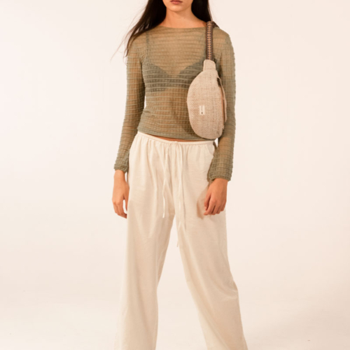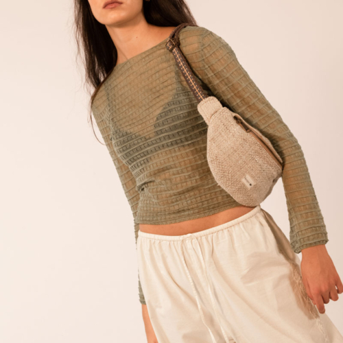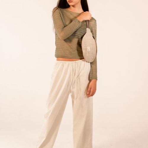 Plant-based 100% dyed hemp fabric made in the looms of Mohan. The waistbag is handmade in Rawal’s workshop.