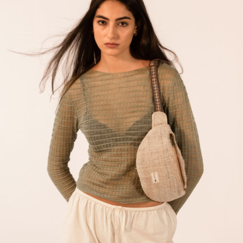 Plant-based 100% dyed hemp fabric made in the looms of Mohan. The waistbag is handmade in Rawal’s workshop.