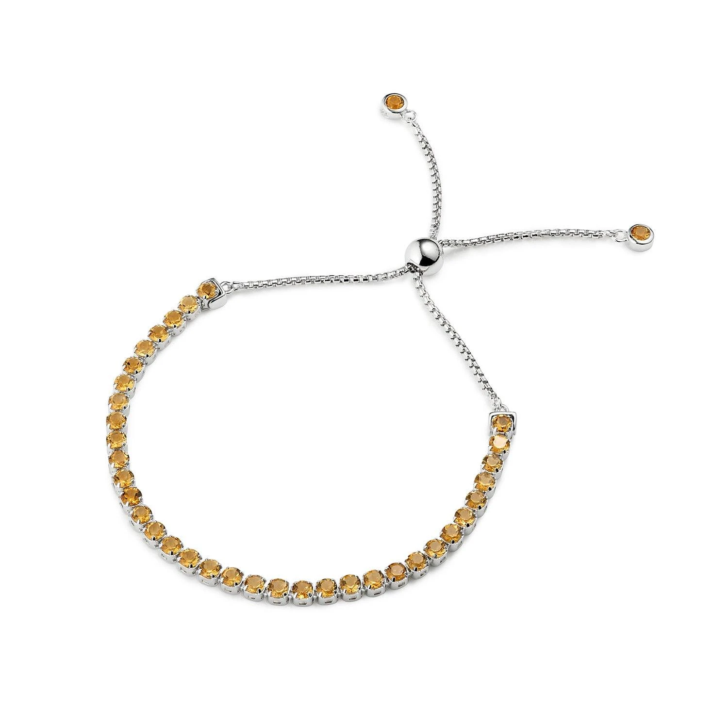 This eye-catching bracelet features round, pearl-size natural citrine gemstones that line up neatly on a sterling silver adjustable bracelet with another two citrine gemstones at each end.